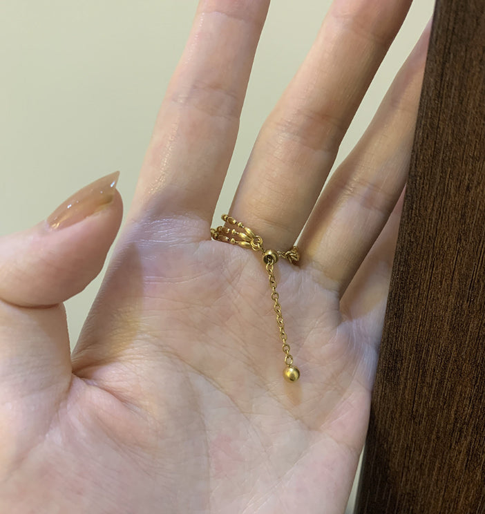 Elegante sortija ajustable a tu medida de acero inoxidable, con múltiples capas en una sola sortija, perfecta para cualquier ocasión. Resistente, duradera y con diseño moderno que combina con todos los estilos.